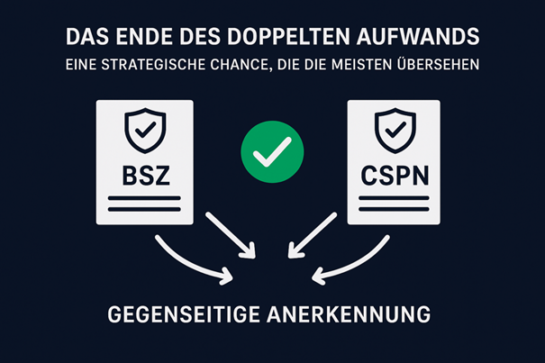 Strategischer Wettbewerbsvorteil: Unternehmen, die Produkte mit einem der beiden Zertifikate nutzen oder anbieten, stärken ihre Position in der Lieferkette. Ein CSPN-zertifizierter Lieferant ist nun für den deutschen Markt ebenso relevant wie ein BSZ-zertifizierter, ein entscheidender Faktor für Einkauf, Risikomanagement und Vertrieb.