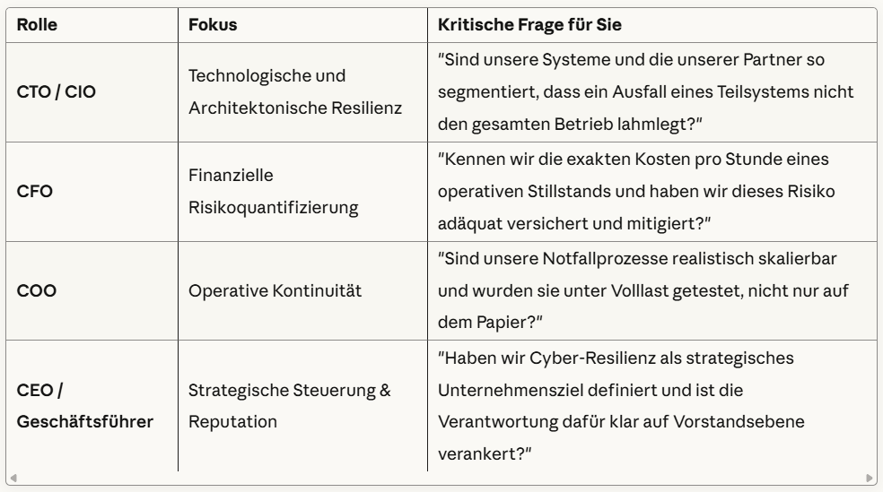 Cyber-Resilienz ist eine Kernkompetenz des gesamten Unternehmens und muss auf Vorstandsebene verankert, gesteuert und mit Ressourcen ausgestattet werden.