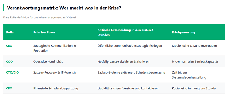 - Beteiligen Sie das C-Level: Eine solche Übung ist nur dann wertvoll, wenn das gesamte Top-Management teilnimmt und Entscheidungen unter simuliertem Druck treffen muss. Nur so werden strategische Lücken im Krisenmanagement sichtbar.